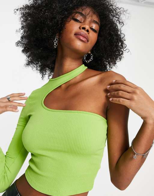 Bershka ribbed cut out asymetric top in green Very well made.
