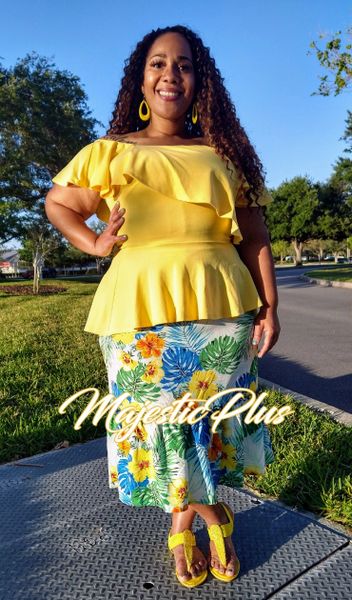 Plus Size Yellow Asymmetrical Off Shoulder Peplum Top Majestic Plus Very well made.