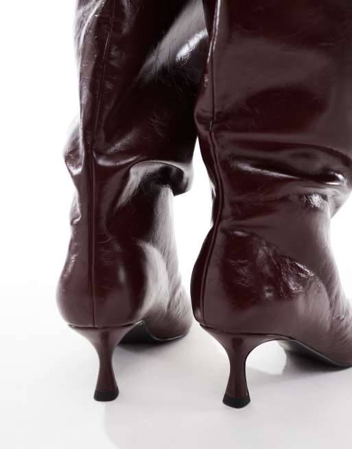 ASOS DESIGN Curve Crimson Kniehohe Stiefel in Burgunderrot zum Hineinschlupfen mit Kitten Absatz Very well made.
