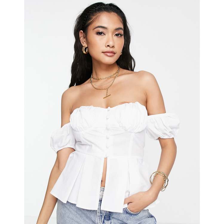 ASOS DESIGN off shoulder corset top with puff sleeve in white ASOS Very well made.