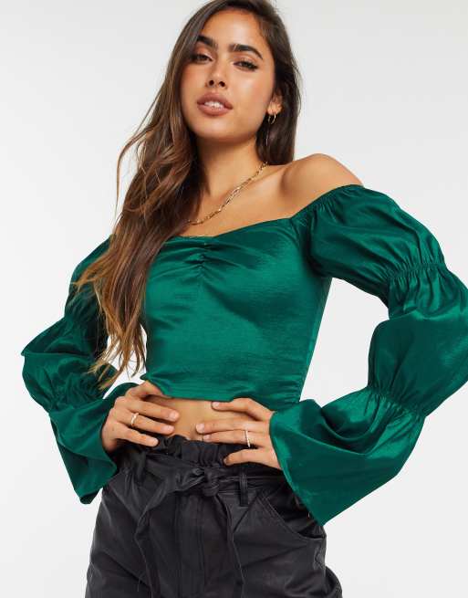 NaaNaa puff sleeve bardot crop top in green ASOS Very well made.
