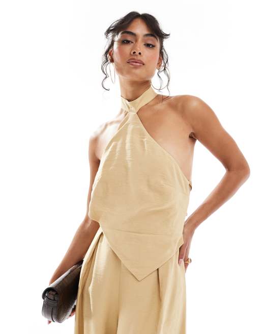 ASOS DESIGN halter neck tie detail wide leg jumpsuit in brown Very well made.