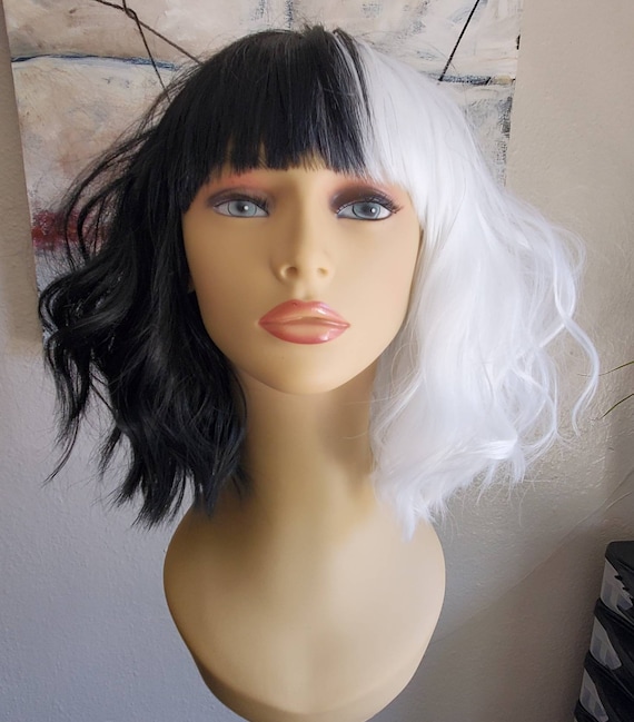 Cruella Deville Black and White Wavy Two Tone Wig Black and White Halloween Wig Bangs Wigs Wig Etsy UK Very well made.