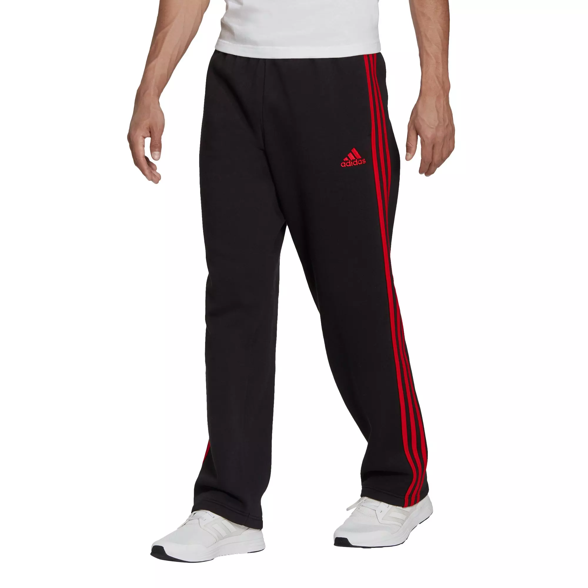 adidas Men s Essentials Fleece Open Hem 3 Stripes Black Red Pants Very well made.
