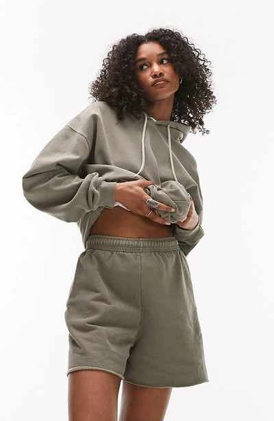 Topshop Raw Hem Fleece Jogger Shorts In Khaki ModeSens Very well made.