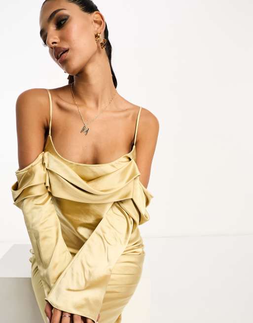 ASOS DESIGN satin off shoulder midi dress with cami straps in gold Very well made.