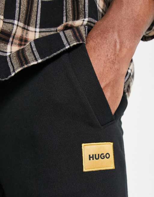 HUGO Doak regular fit gold logo trackies in black ASOS Very well made.