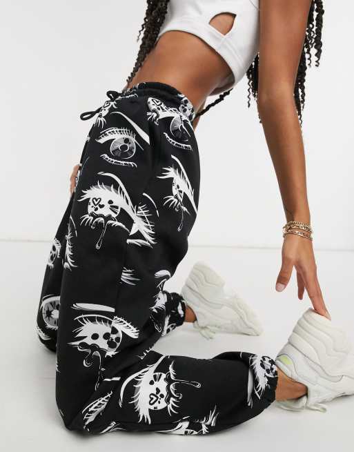 Bershka x Billie Eilish eye printed joggers in black ASOS Very well made.