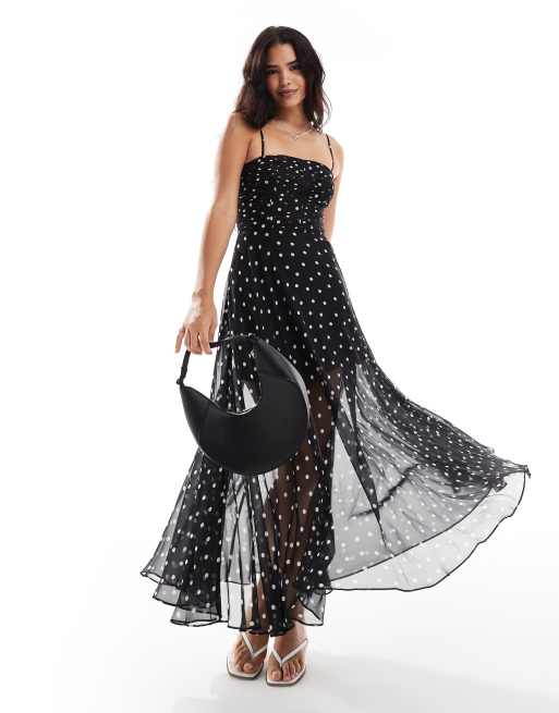 Forever New ruched body sheer maxi dress in polka dot print Very well made.