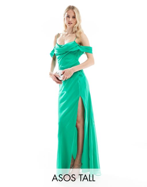 ASOS DESIGN Tall Exklusives Maxikleid in Grun mit Wasserfallausschnitt Riemchentragern und schulterfreien Armeln ASOS Very well made.