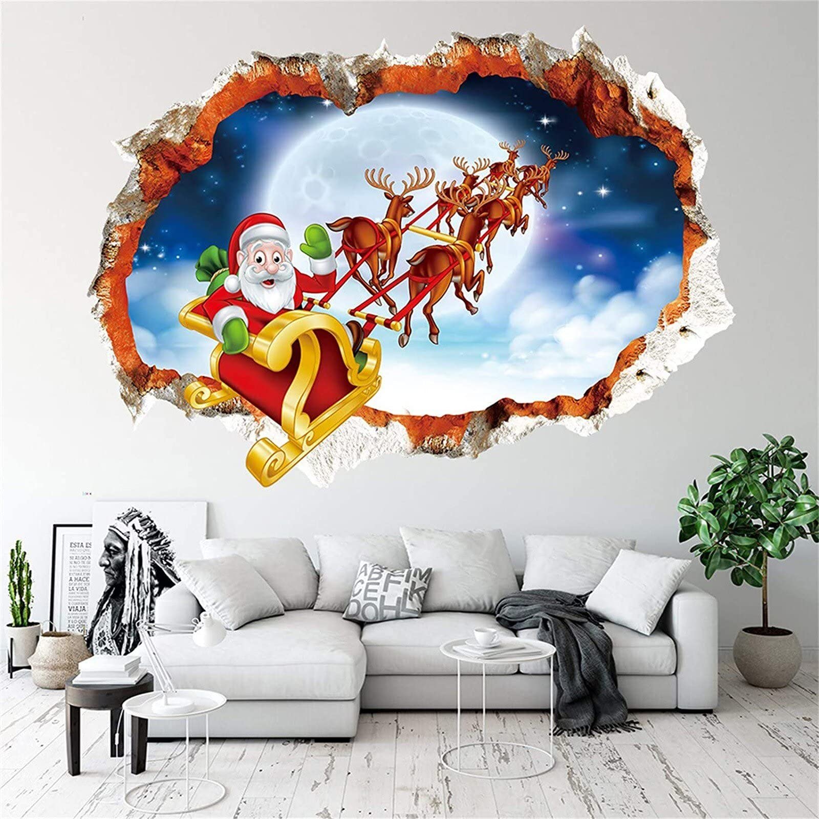 Fopytu 3d Christmas Wall Decals Stickers Merry Christmas Santa Claus Reindeer Break Through the Wall Vinyl Stickers Posters Christmas Party Supplies Amazon Home Kitchen Very well made.