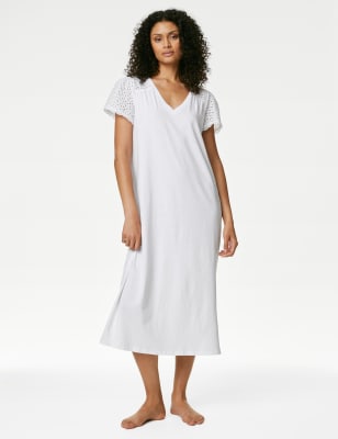 Pure Cotton Broderie Trim Long Nightdress Very well made.
