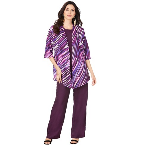 Roaman s Women s Plus Size Three piece Pantsuit 32 W Dark Berry Very well made.
