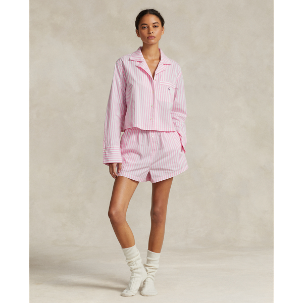 Ralph Lauren Pink Embroidered Initials Striped PJ Pajama Shirt Very well made.