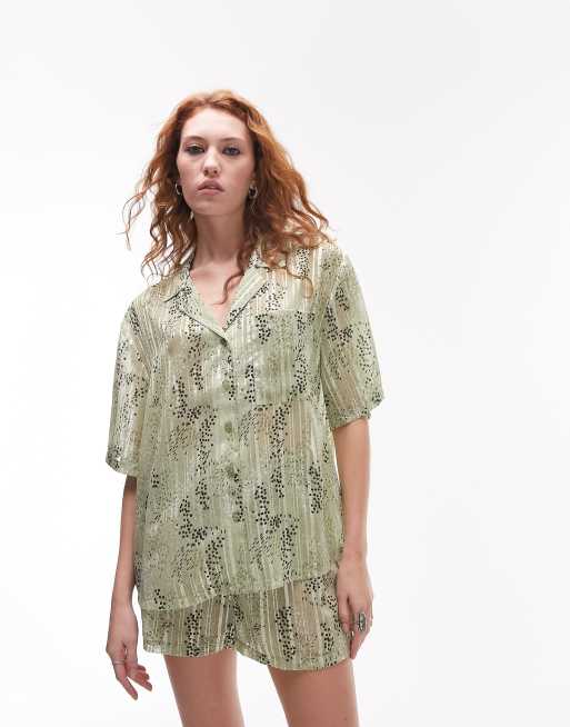 Topshop sheer spot print shirt and short pajama set in sage ASOS Very well made.