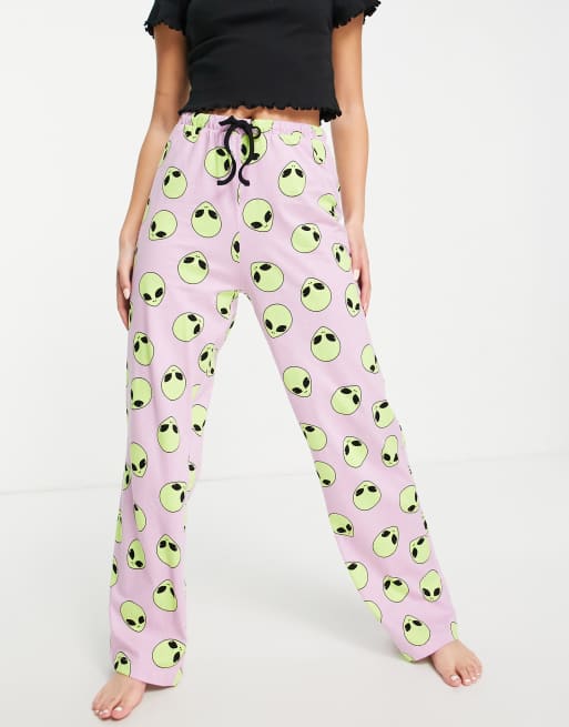 ASOS DESIGN alien cropped tee trouser pyjama set in black pink Very well made.