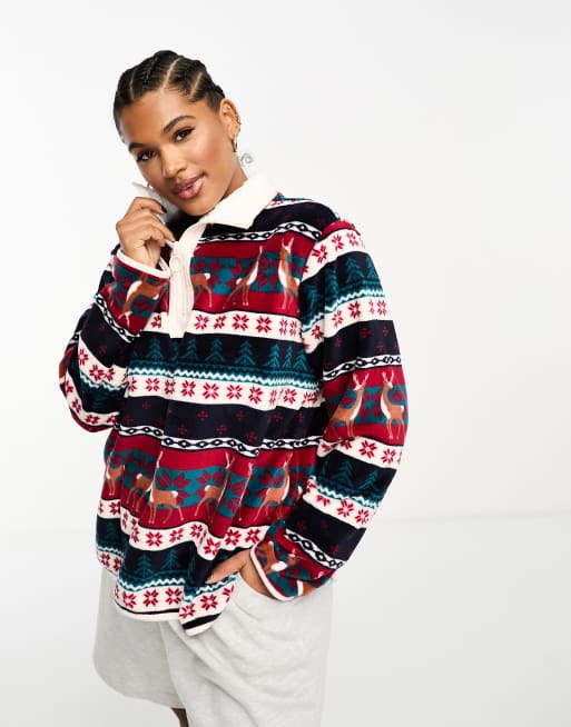 Chelsea Peers Plus deer fairisle zip fleece lounge top in navy and Very well made.