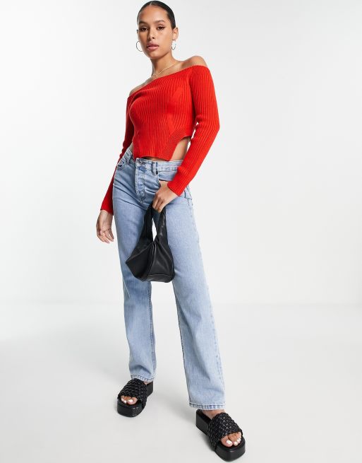 ASOS DESIGN Schulterfreier Pullover in Rot mit geformtem Saum ASOS Very well made.