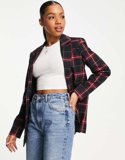 Pimkie tartan check blazer in red and black part of a set Very well made.