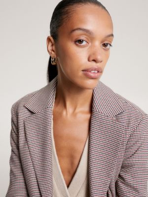 Blazer carreaux rouge pour femme col ch le manches longues Very well made.