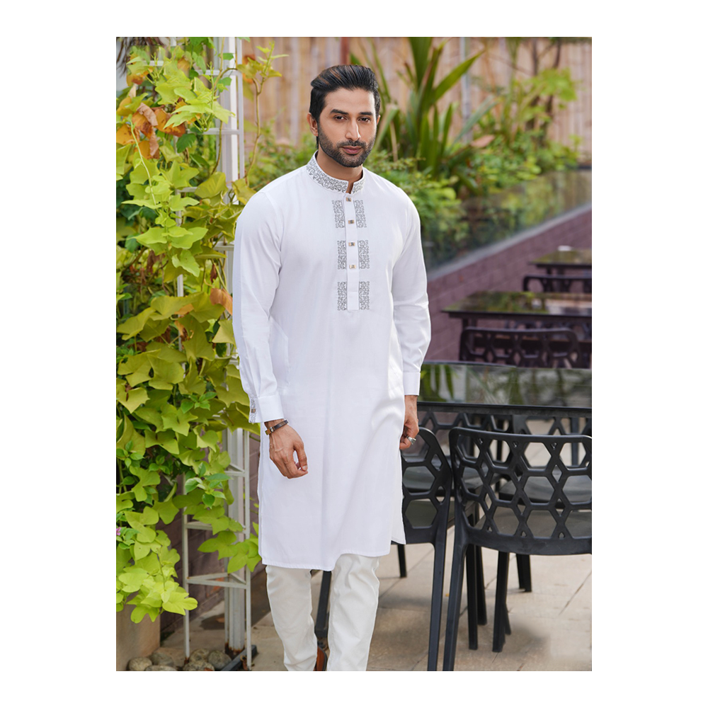 White Panjabi with Embroidered Printed China Mart Shop Very well made.