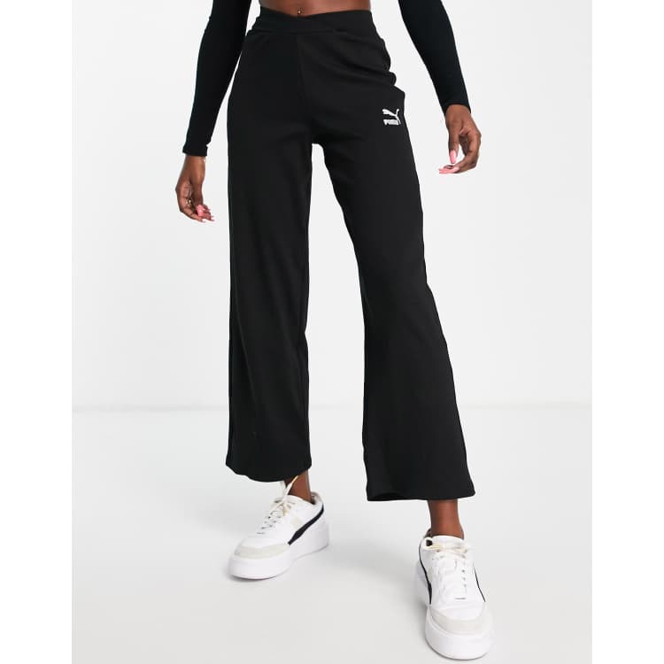 Puma ribbed high waisted wide leg trousers in black exclusive at Very well made.