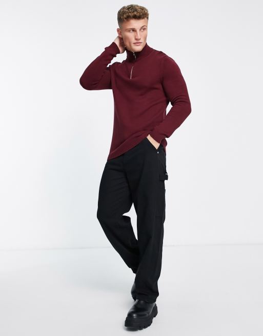 ASOS DESIGN midweight half zip cotton jumper in burgundy ASOS Very well made.