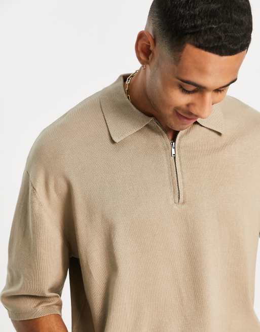 Only Sons oversized knit polo with quarter zip in beige ASOS Very well made.