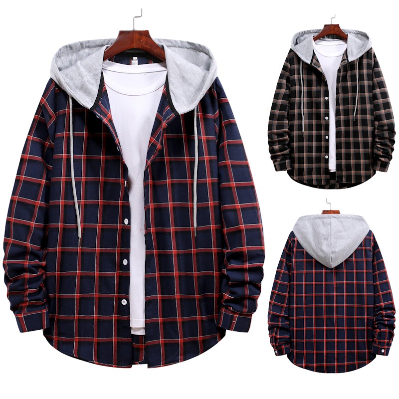 Men Casual Long Sleeve Hoodie Long Sleeve Shirt Hooded checkered Very well made.