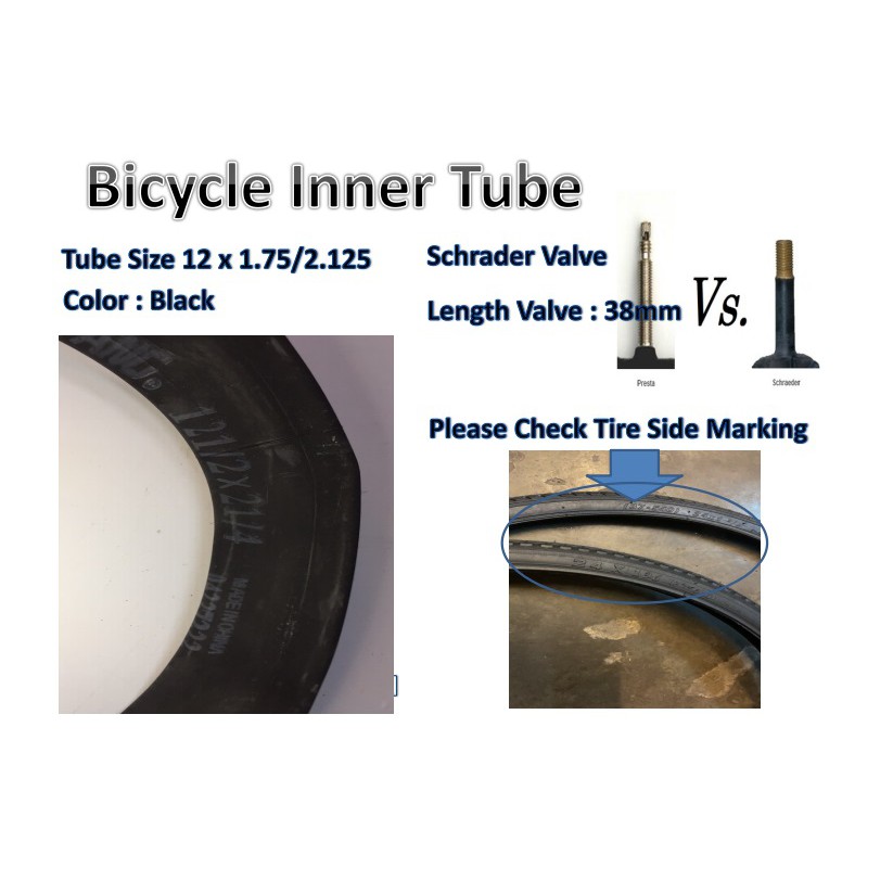 LotFancy 2Pcs 12 x 1.75 1.95 2.125 Inner Tubes for Most 12 Kid Bikes Strollers with 2 Levers Very well made.