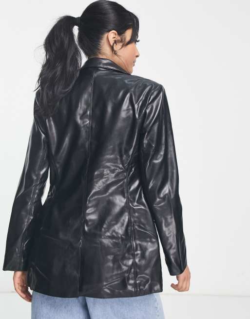 ASOS DESIGN Petite fitted leather look blazer in black ASOS Very well made.
