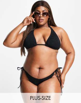 Ivory Rose Plus tie side bikini briefs in black crinkle ASOS Very well made.