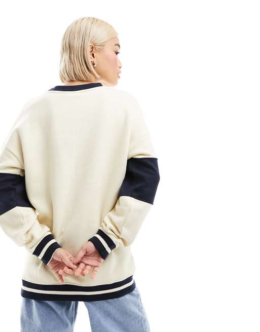 Daisy Street paneled stripe Los Angeles sweatshirt in stone and Very well made.