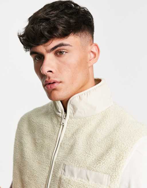 Selected Homme fleece jacket with nylon pocket in beige Very well made.