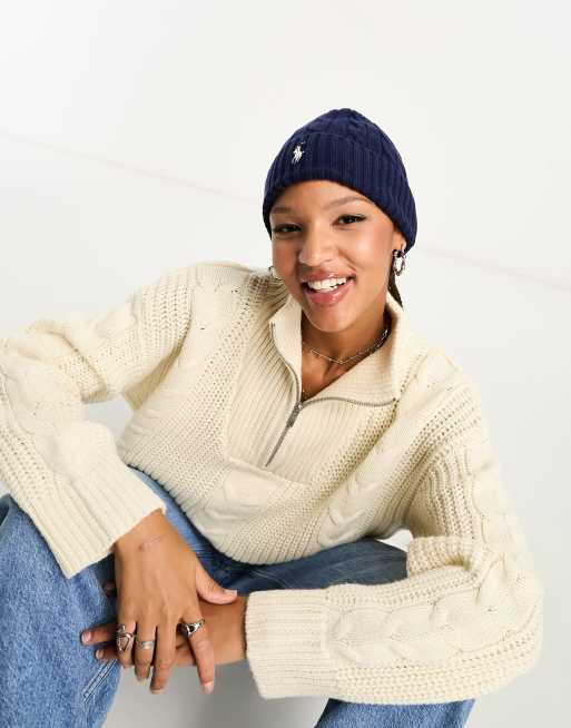 Polo Ralph Lauren cable knit beanie in navy with logo ASOS Very well made.
