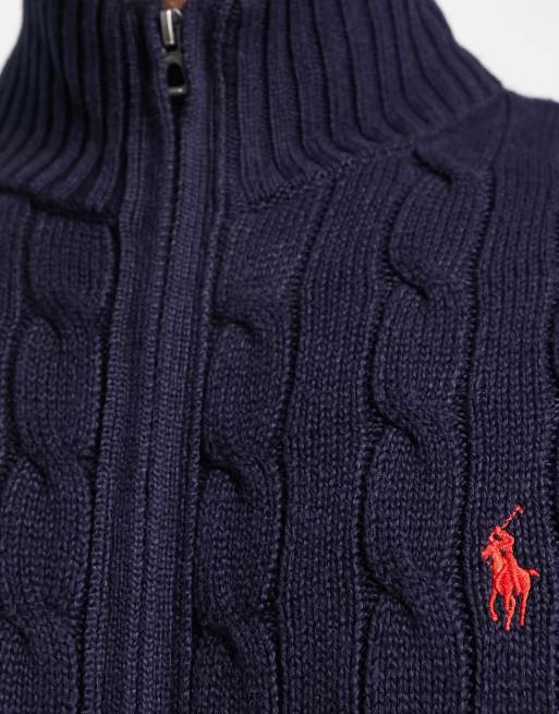 Polo Ralph Lauren icon logo cotton cable knit full zip cardigan in navy Very well made.