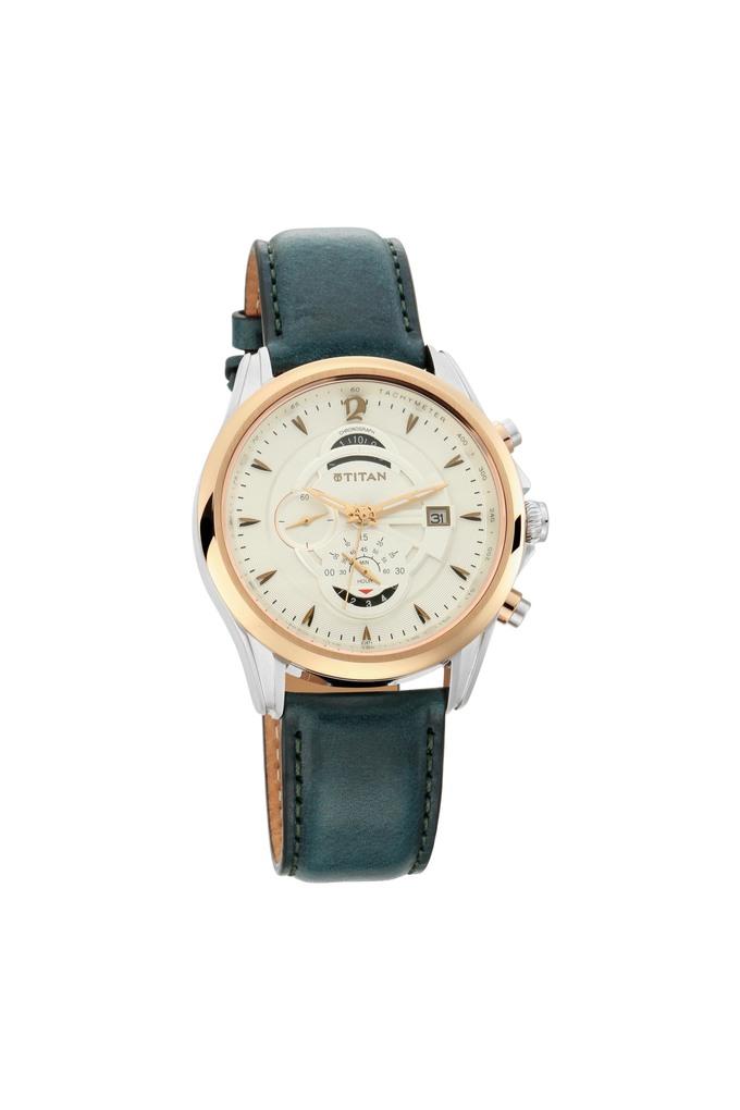 Buy TITAN Mens White Dial Leather Chronograph Watch Shoppers Very well made.