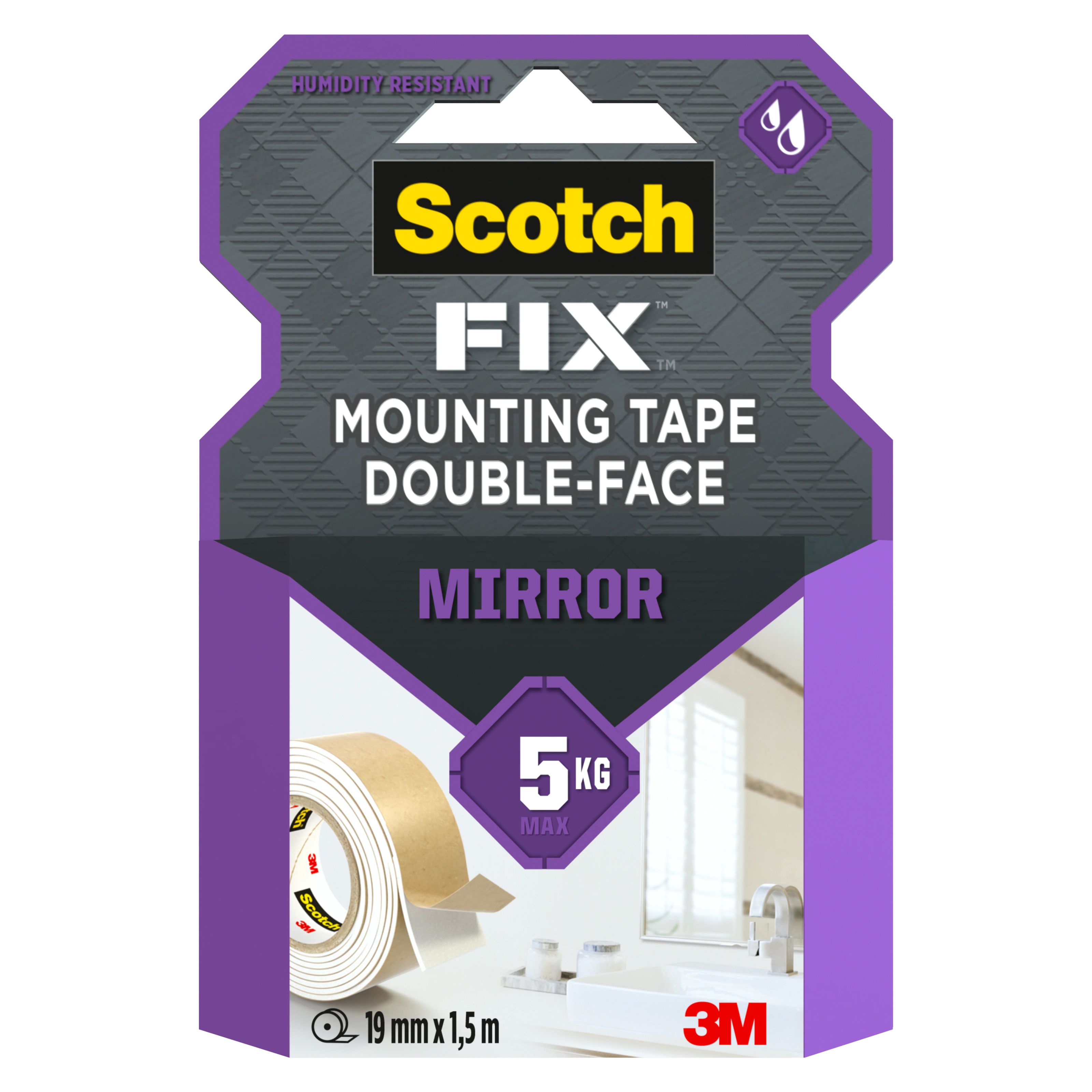 Scotch Fix Mirror Mounting Tape 4496W 1915 MR 19mm x1 5m 1 roll Very well made.