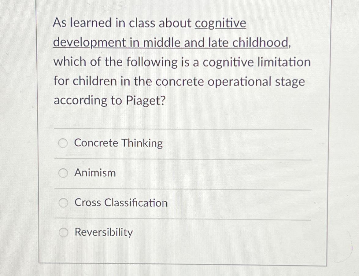 Solved As learned in class about cognitive development in Chegg Very well made.