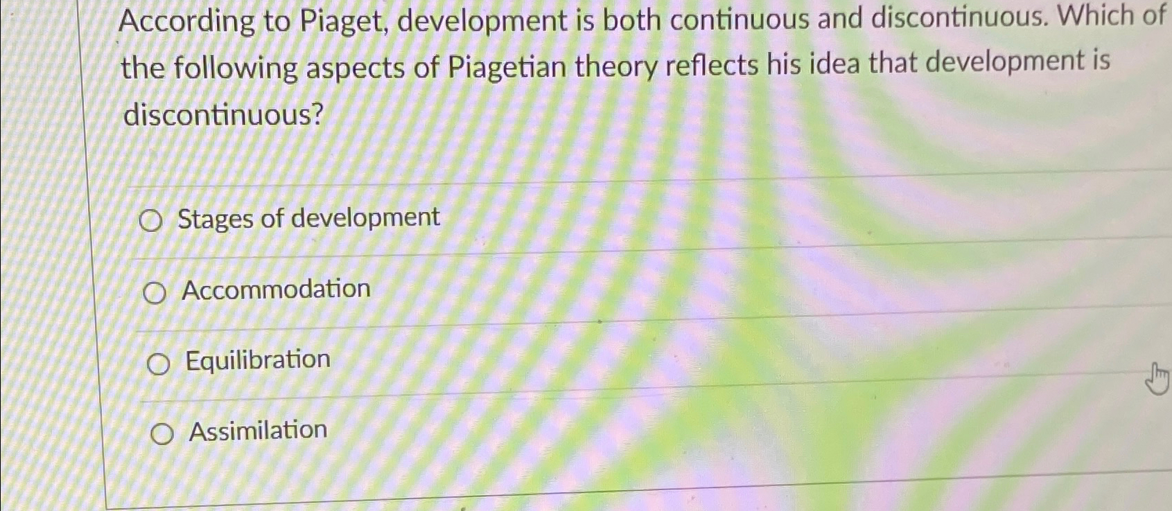 Solved According to Piaget development is both continuous Chegg Very well made.