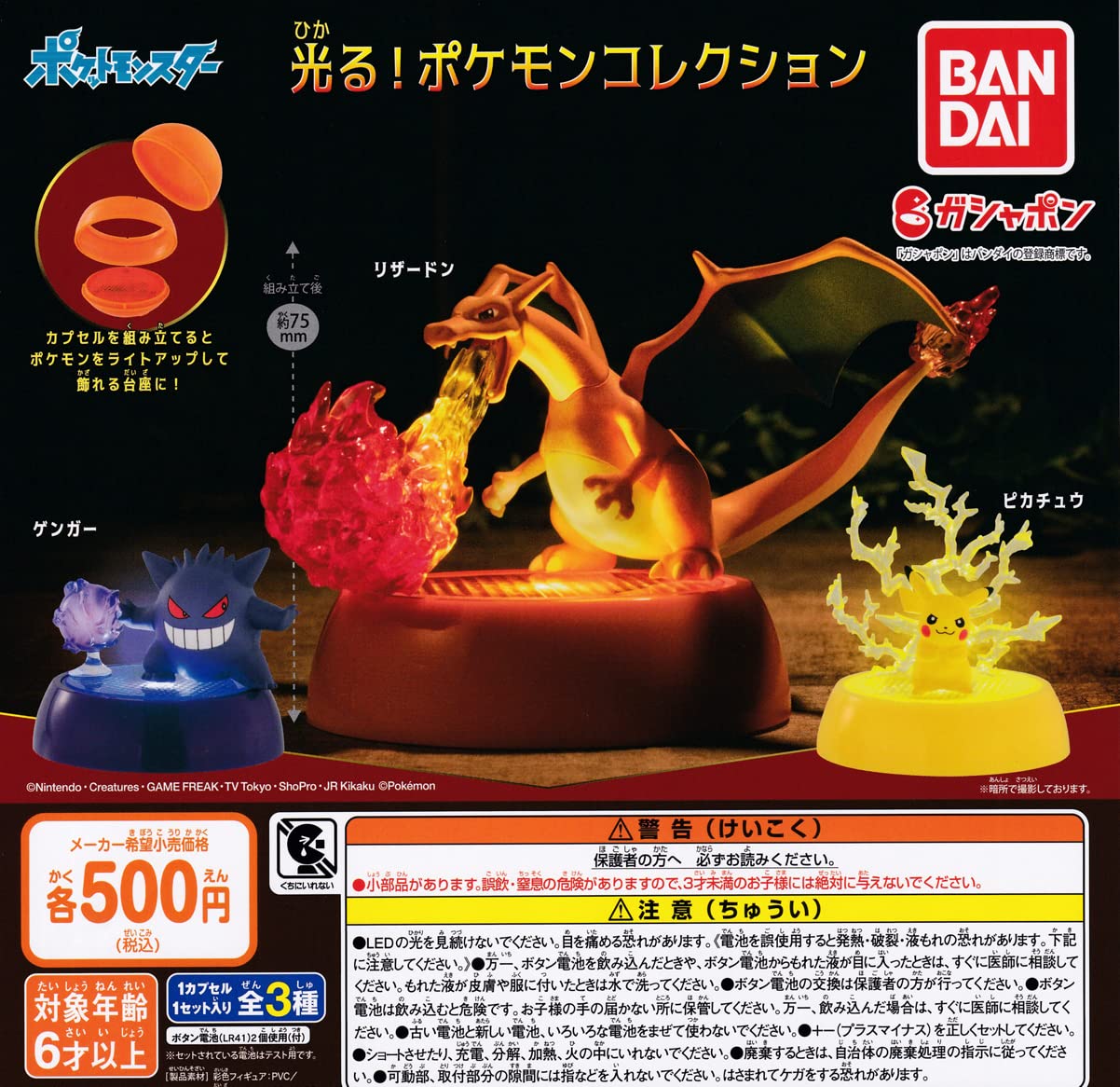 Bandai Set of 3 Pokemon Hikaru Collection Light Base LED Light Pikachu Gengar Charizard Gashapon Figures Height 7 cm Original Japan Amazon Toys Games Very well made.