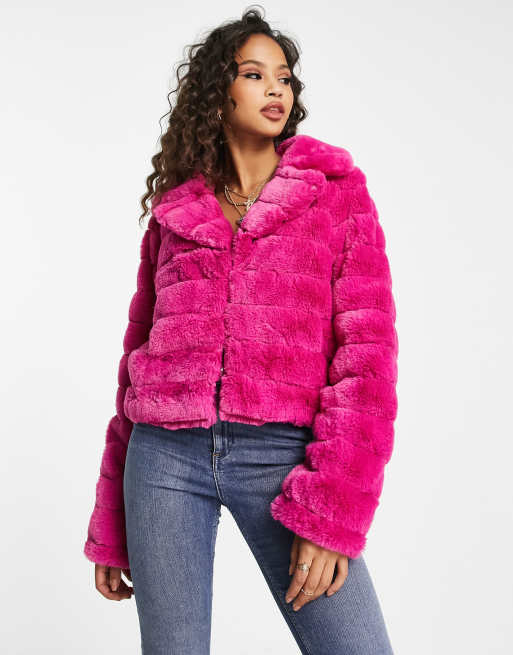 Veste rose moyen courte en fausse fourrure sans col New Look Very well made.