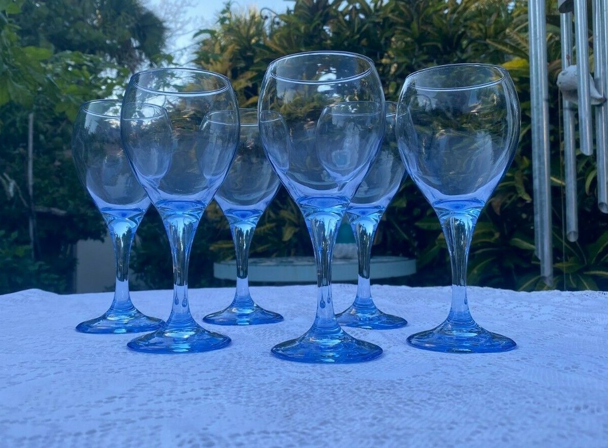 Vintage Libbey Premiere Blue Medium Wine Glasses Set of 6 Very well made.