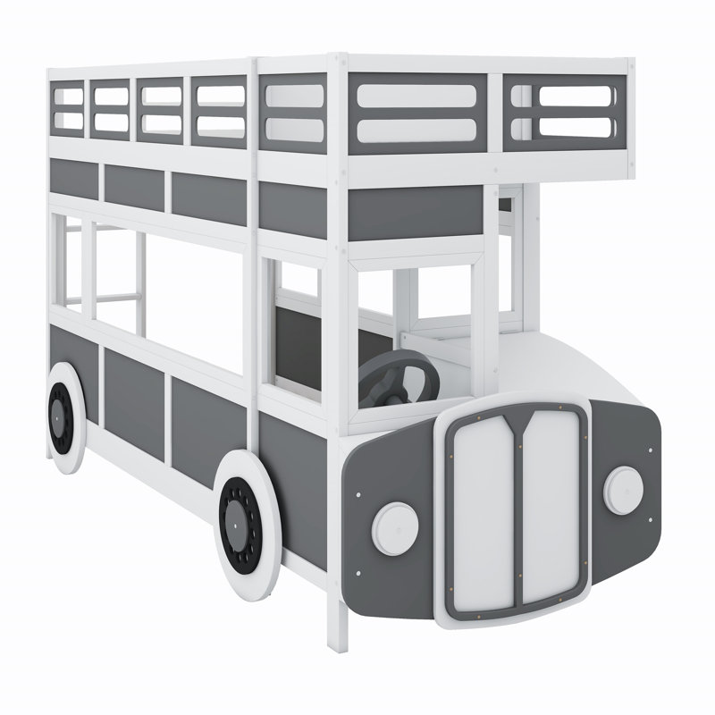 WOODRK Twin Over Twin Bus Shaped Bunk Bed Frame with Wheels and Storage Space Bunkbed with Full Length Guardrails and Ladder for Kids Teens Girls Boys Bedroom Space Saving Gray White Amazon Home Very well made.
