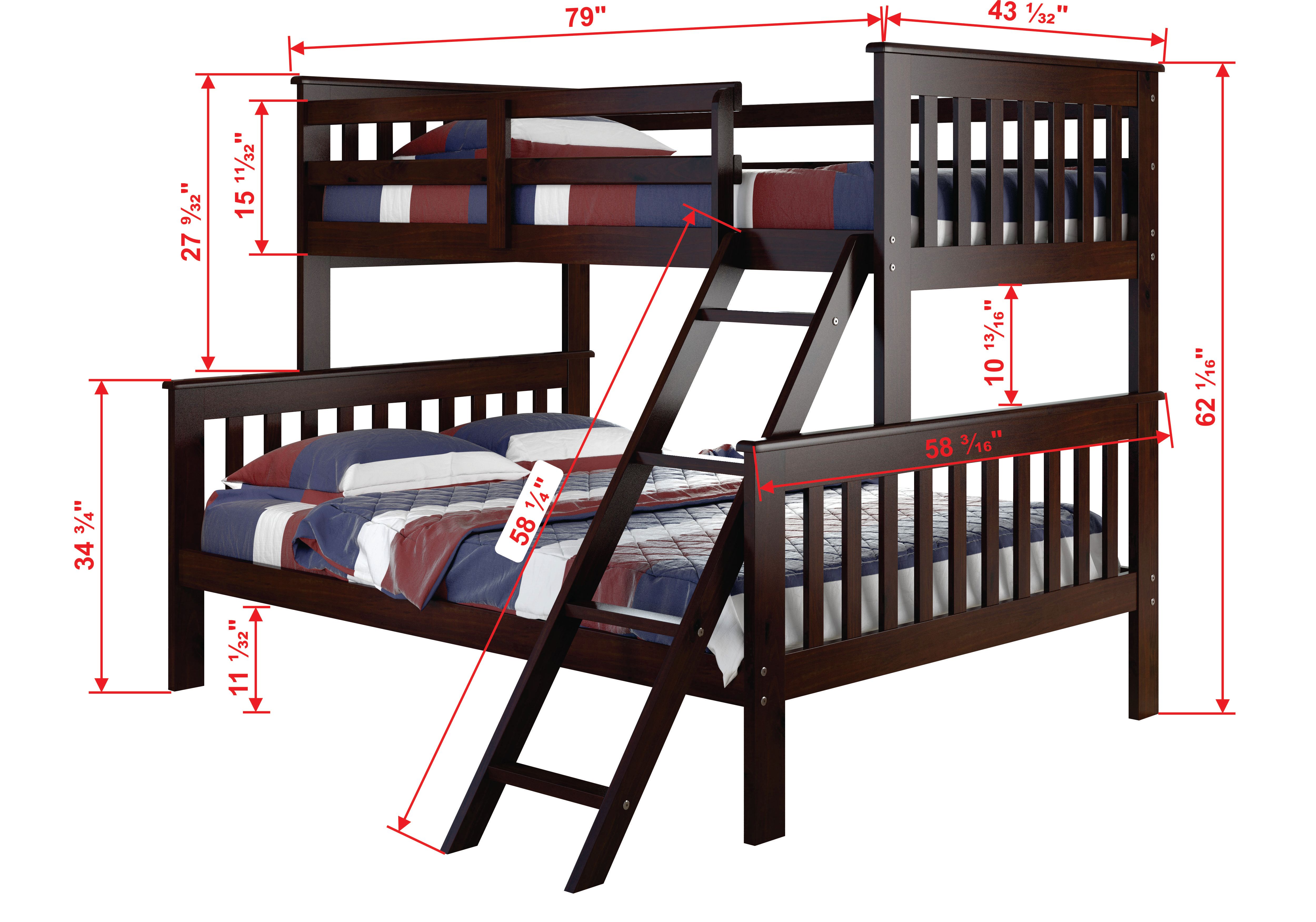 Mission Twin Full Bunk Bed Dark Cappuccino 1018 3TFCP by Donco Trading Company at Wright Furniture Flooring Very well made.