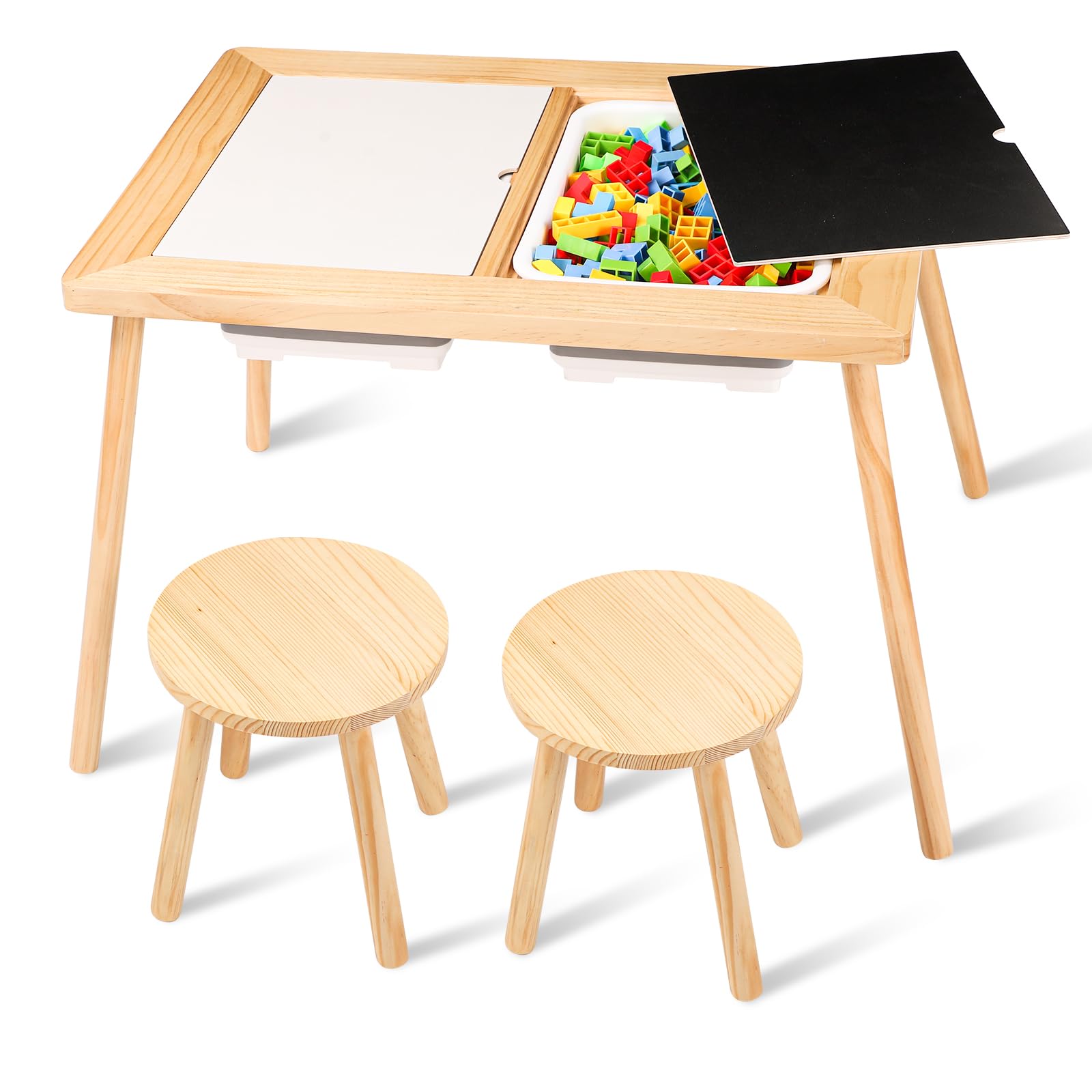 Sensory Table for Toddlers Multifunctional Play Sand Table with 2 Foldable Bins 2 Stools 2 Double Sided Lids Art Drawing Table for Kids Wooden Very well made.