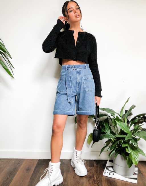 Selected Femme Short en jean long ceinture Bleu Very well made.