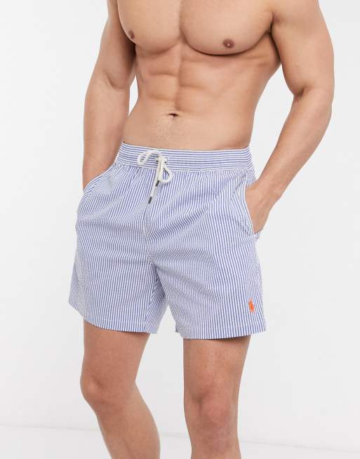 Polo Ralph Lauren Traveler Short de bain en seersucker ray avec logo joueur de polo Bleu blanc Very well made.