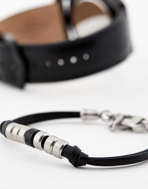 Fossil FS5500SET Minimalist leather watch bracelet gift set Very well made.
