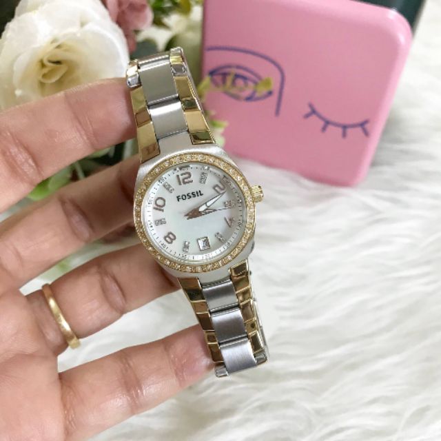 Fossil AM4183 Glitz Ladies White Mother of Pearl Dial Dual Tone Very well made.